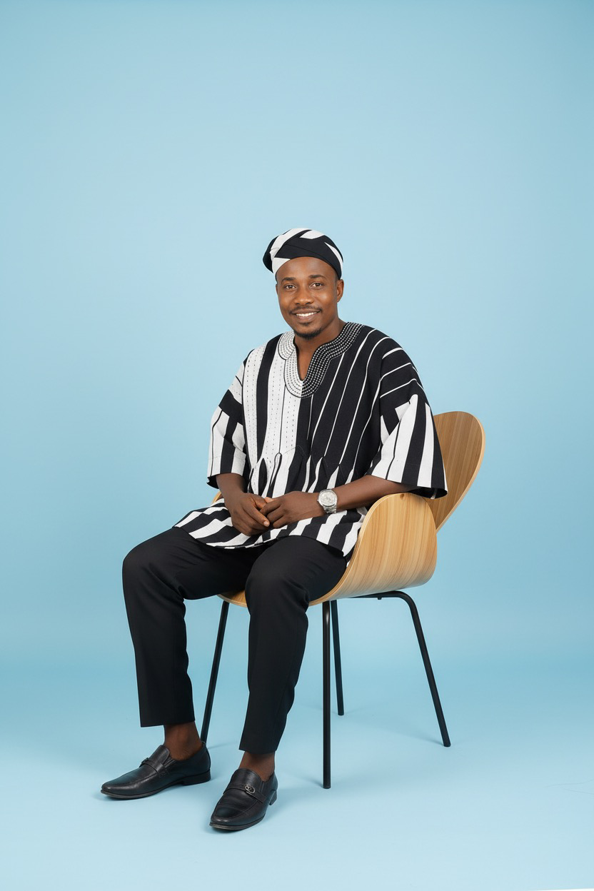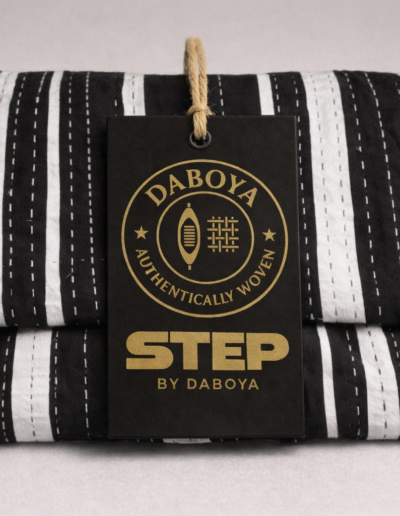 Deep navy smock with golden stripes and white star-like dotted motifs. A true night-sky inspired masterpiece.