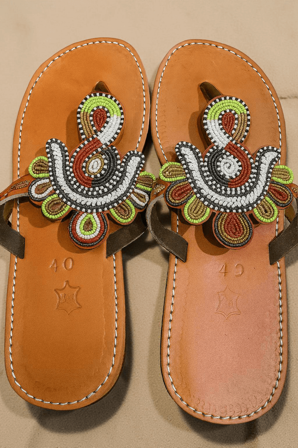 Lightweight, beach-inspired sandals decorated with cool-tone bead patterns. Perfect for warm weather, coastal trips, or everyday comfort. A blend of beauty and craftsmanship.